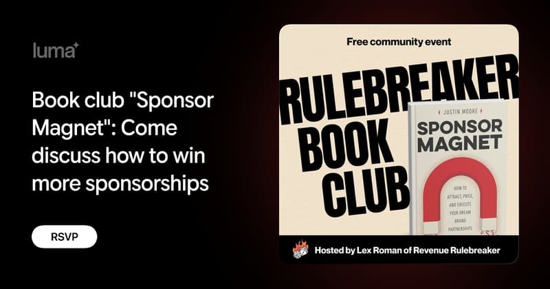 The first book is Justin Moore's Sponsor Magnet. This book came up a bunch during our February events on sponsorships. It's an easy read and it includes a clear framework for how to book more, better and higher paying sponsorships. Justin's a sponsorships pro who books his own deals, used to run a creator agency and coaches creators now. Learn more about him at https://www.creatorwizard.com/