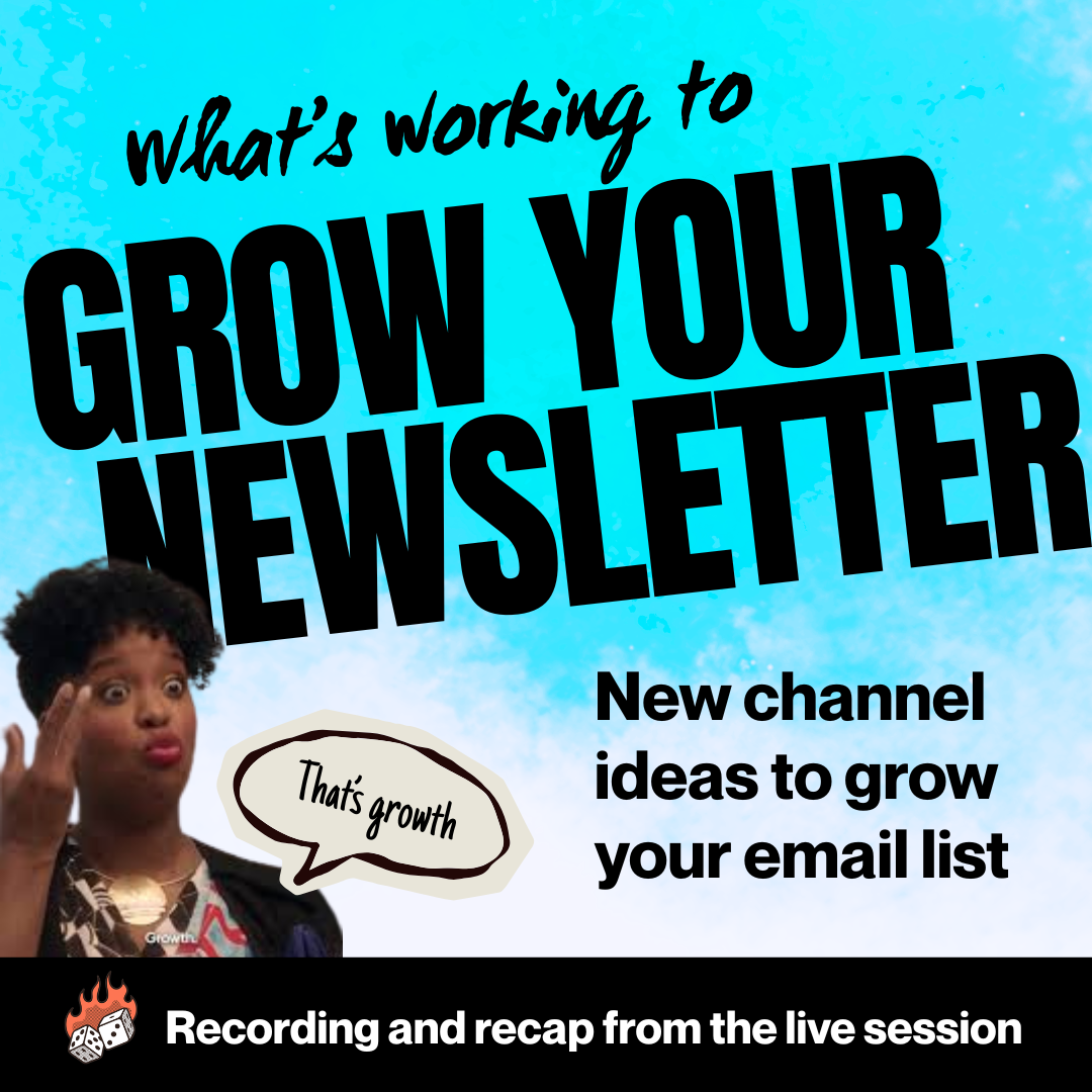 Feeling stuck about how to grow your list? Learn what's working for everyone else and take stock of what's working for you. You'll leave this session with more clarity about your top newsletter growth channels and some ideas for channel experimentation.