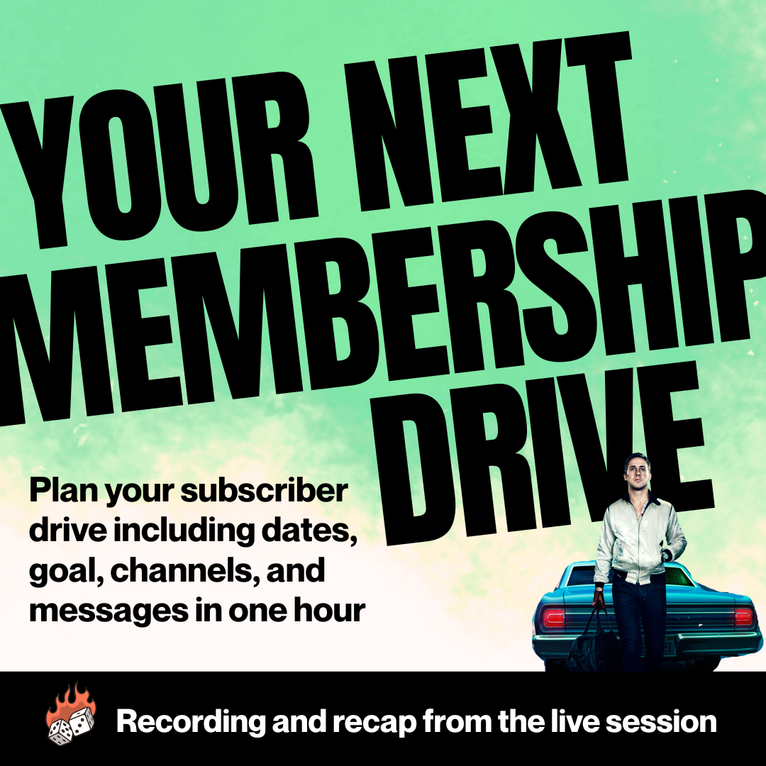 Ready to do a big play for members or subscribers? Let's workshop your membership drive strategy.