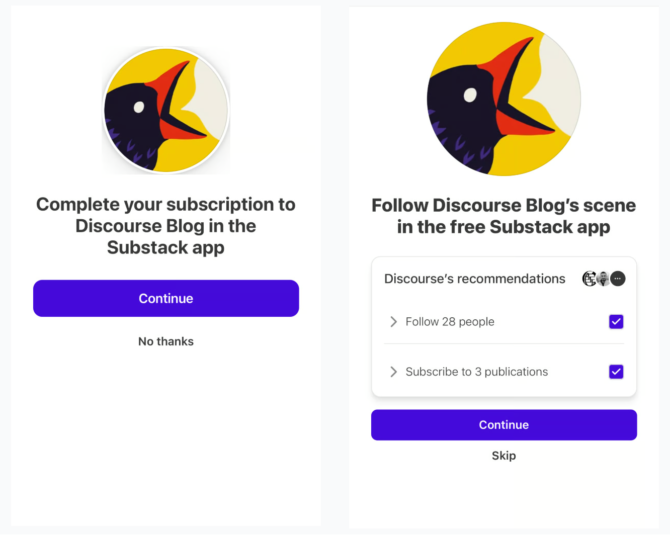 Turns out if you forward an email to a friend and they upgrade to a paid subscription, it will actually upgrade YOU to a paid subscription. This is a huge security bug that Substack is aware of, having to do with how they authenticate users via one click. Substack users have reported it several times but it remains broken.