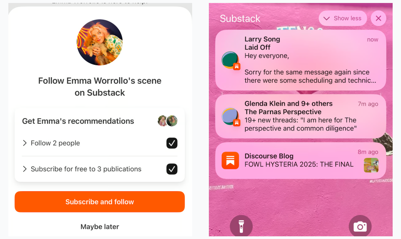 Substack is famous for their recommendation feature. As a growth marketer, I like this feature, but Substack has ruined anything that was good about it. With the click of a button, youâve just opted in to hear from a bunch of new creators, and you canât easily see who they are!