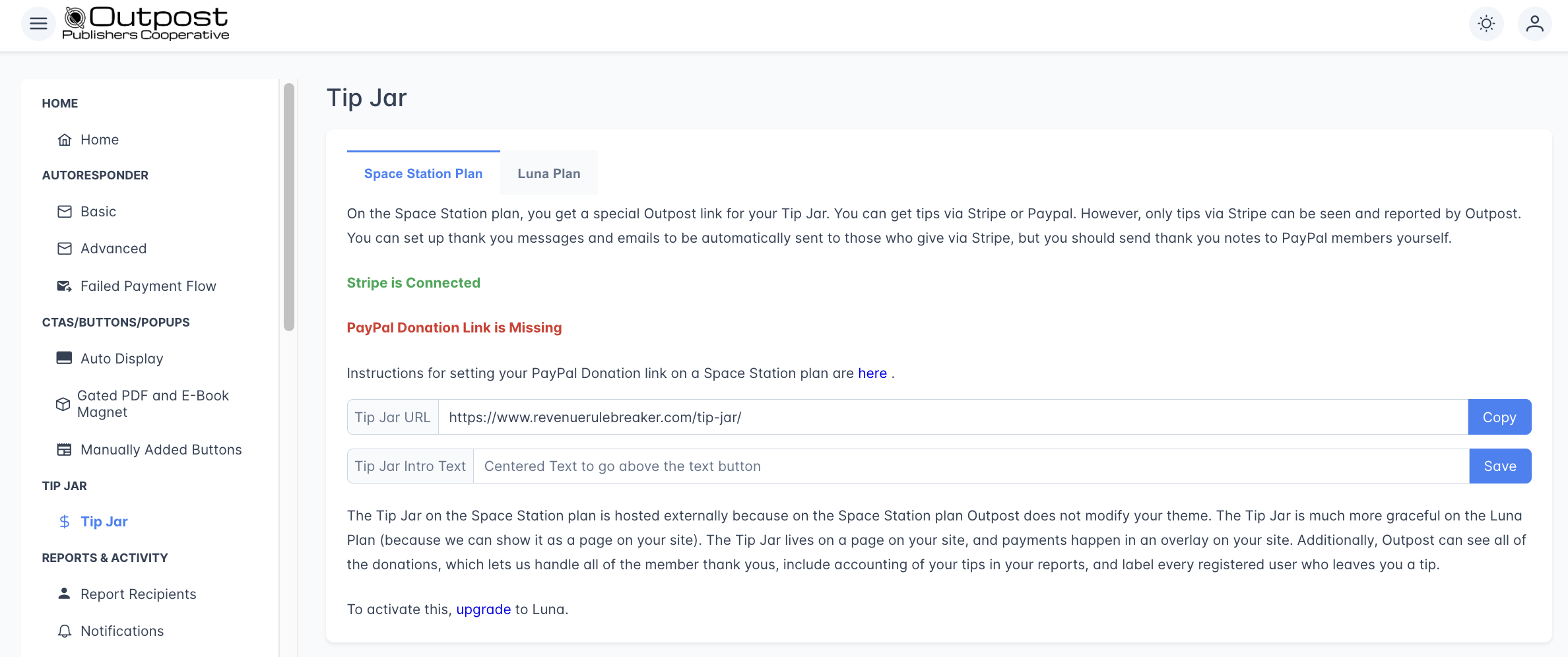 - Add tip jar to nav: Grab your tip jar link and link it in your navigation or in your email template. This is already set up so you just need to copy the link and put it somewhere. Make sure Stripe is hooked up so you can get that cash!