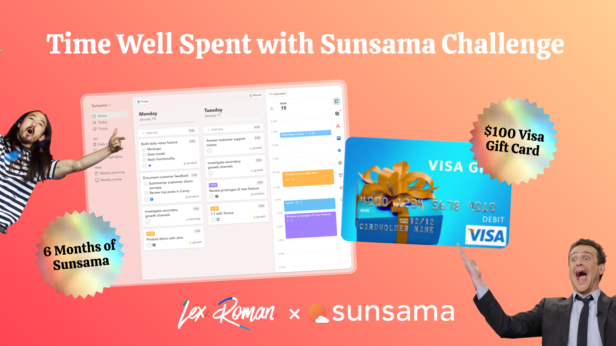 Everyone who's not already on a paid plan with Sunsama is eligible. We'll choose a winner at random after the month wraps up. Your odds are pretty good because this challenge is just for us and usually no one does the stuff I ask! Prove me wrong!