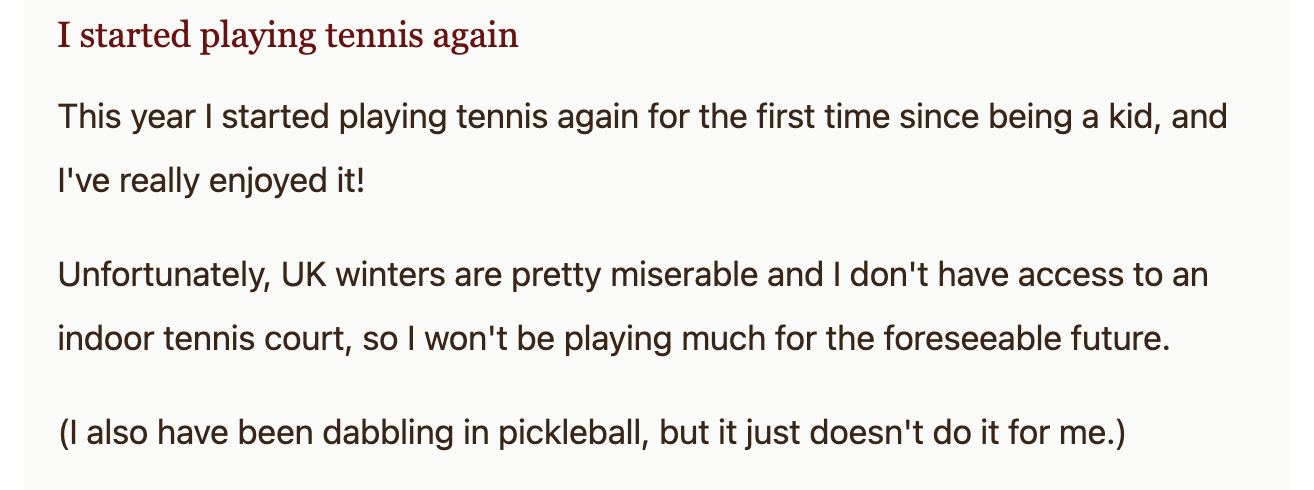 A whole lot of us publish these reviews publicly. I paywall mine and think you probably should too, but either way, it begs the question—what changes when we write our year in review for a public audience?