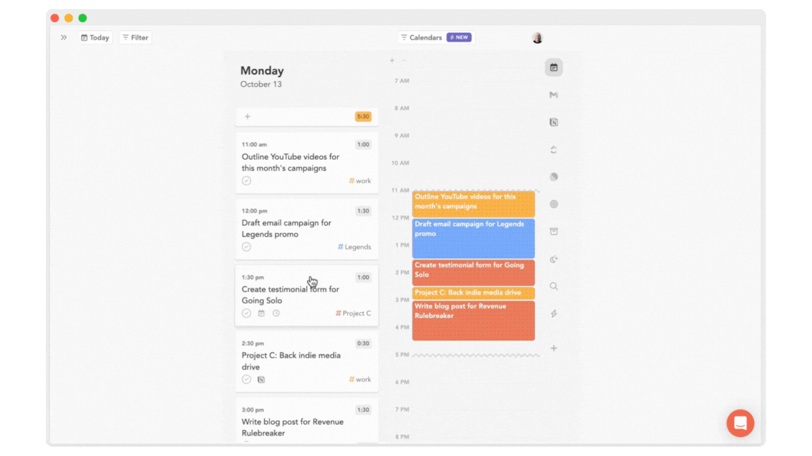 Their new task projection feature visualizes your daily plan on your calendar, without you having to add any timeblocks. Rearrange your tasks and your calendar will shift too.